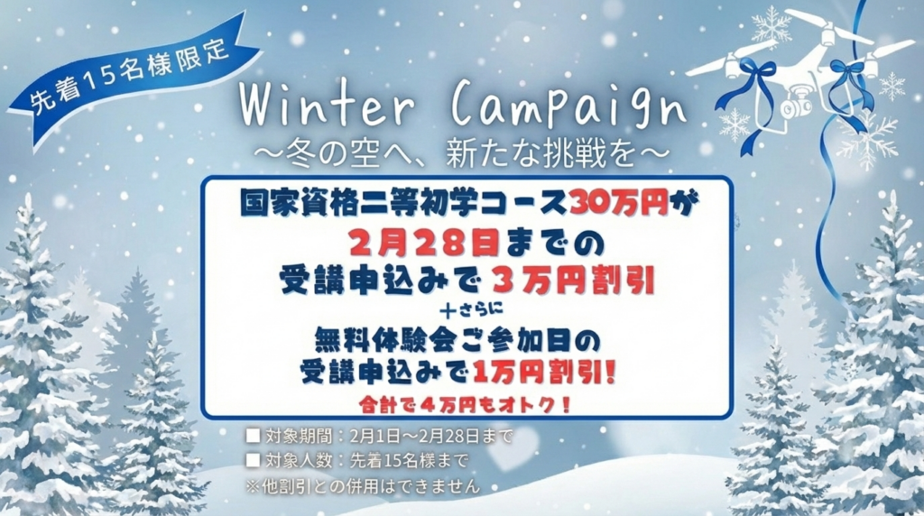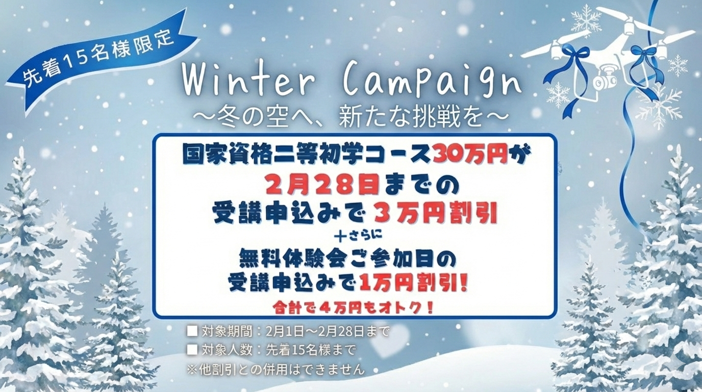 ご受講をお考えの方向けの無料スクール体験を毎日開催! オンラインならドローンの説明会のみご参加いただくことも可能です。
